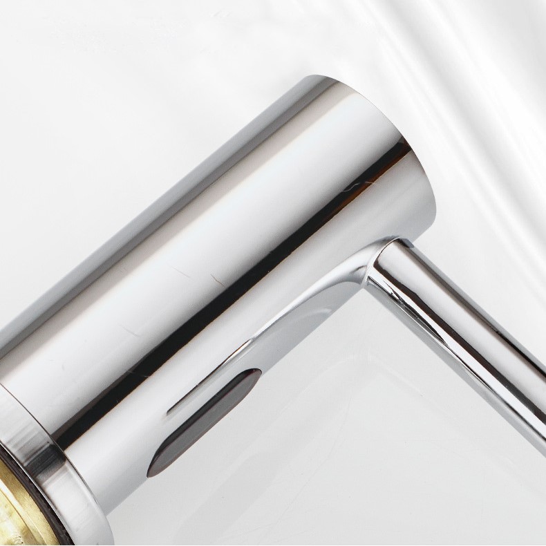 Advantage of Faucet Soap Dispenser FF003: 1. Two modes, free to choose: foam dispensing or dripping dispensing. 2. Contactless intelligent sensing, sensing distance 3-8cm. 3. Thickened corrosion-resistant brass body with multi-layer electroplating for durability. 4. Quantitative liquid discharge without waste, liquid output 1-1.5ml. 5. Thick surface coating, effective wear and corrosion resistance