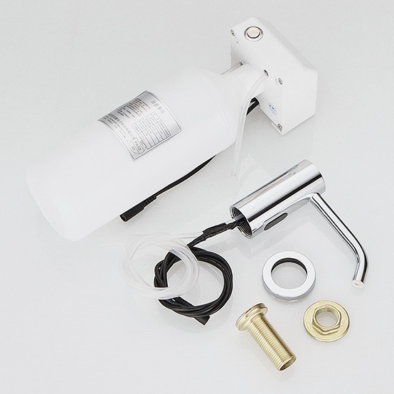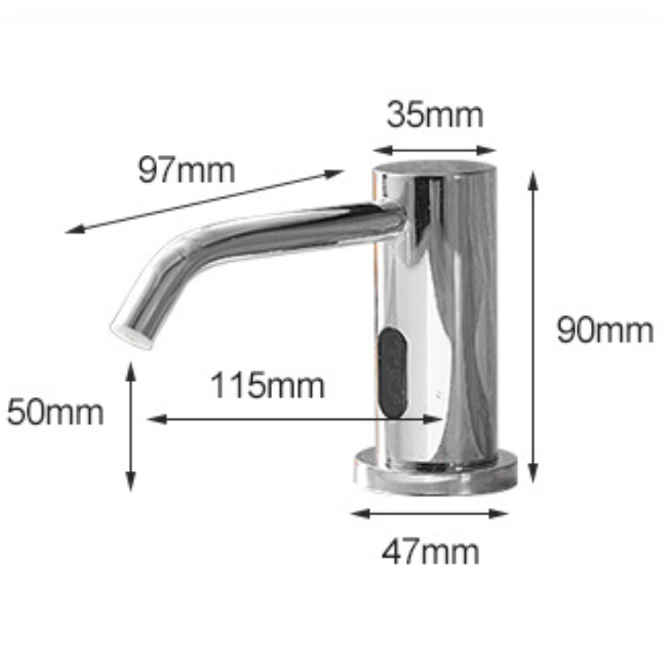 Faucet Soap Dispenser FF003 Made by Brass, Chromed Finish Volume: 1000ml Version: Foam or Liquid Power Supply: AC220V or DC6V Suitable for bathroom of shopping mall, school, hospital, airport, railway station etc. Wall Mounted